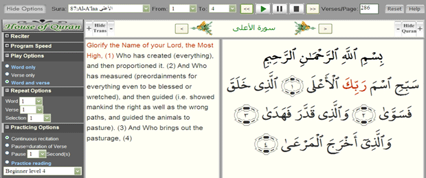 - Simple; select surah, verses to memorize -> hit play, and the program does the rest.